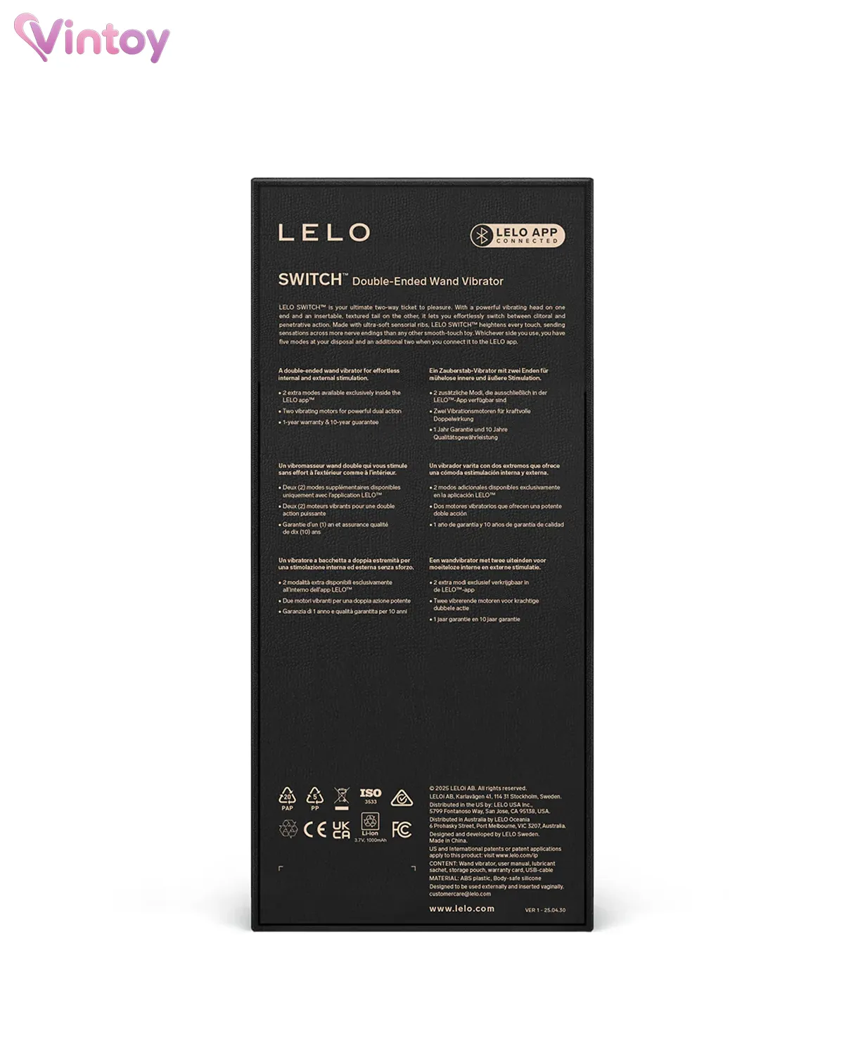 - Bảo quản trong túi đựng chính hãng LELO (hoặc hộp nguyên bản), đặt ở nơi khô ráo, thoáng khí và tránh ẩm mốc.