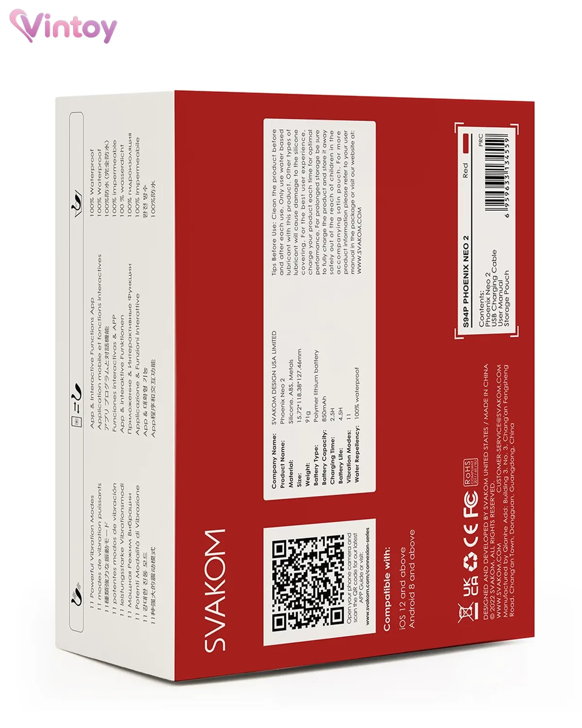 Trước khi bắt đầu những phút giây thăng hoa, hãy dành chút thời gian sạc đầy cho Svakom Phoenix Neo 2 nhé! Sản phẩm được trang bị pin lithium polymer tiên tiến, an toàn và thân thiện với môi trường. Chỉ cần khoảng 2–2.5 giờ sạc là bạn đã có ngay 4.5 giờ sử dụng liên tục – đủ để nàng thoải mái đắm chìm trong khoái cảm mà chẳng phải lo lắng bị “gián đoạn” giữa chừng.
